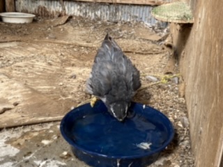待って 水の器を洗って水入れて...順番で最後になってしまうアメリカオオタカ君待ち焦がれて水を入れた途端頭まで水の中