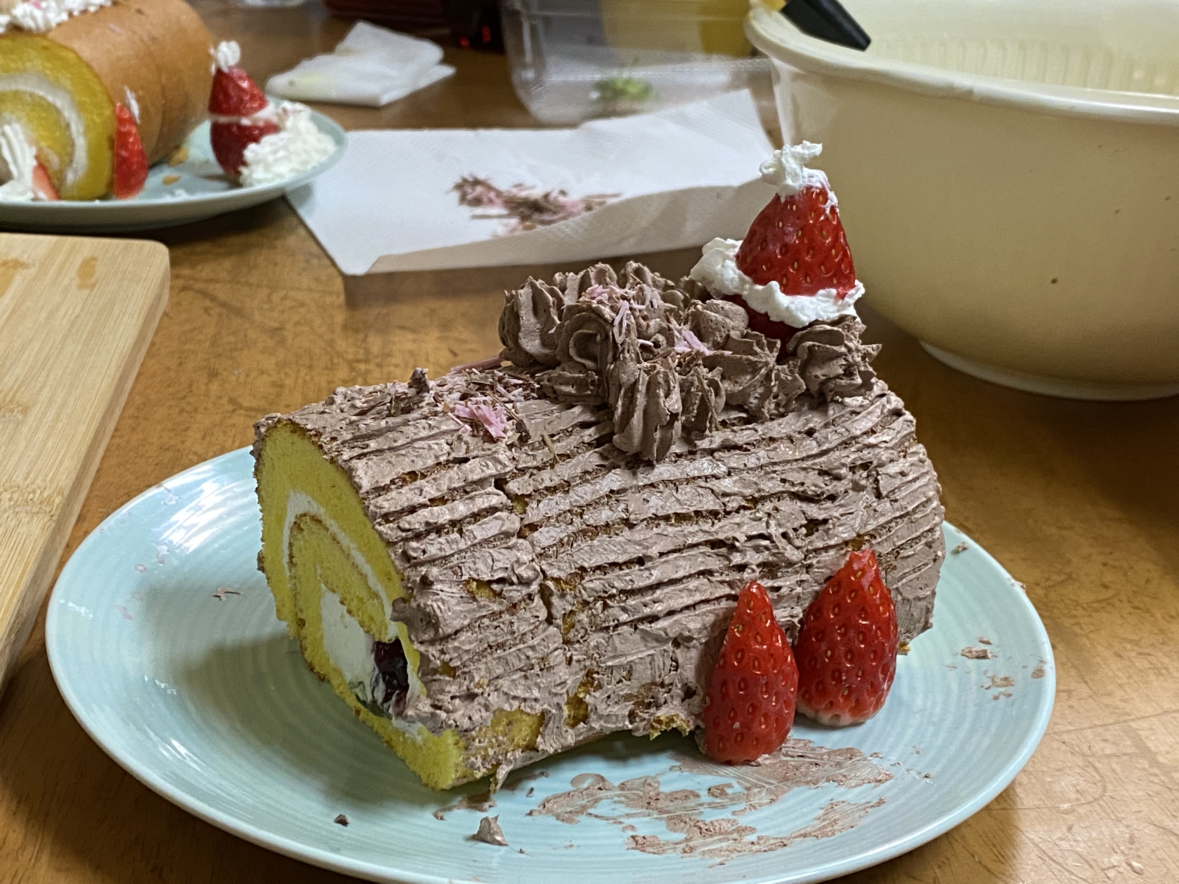クリスマスイブイブ 明日は長女がバイトで夕方いないので1日早いけどクリスマスっぽい夜ご飯夕食後はロールケーキを自分たちでデコレーション