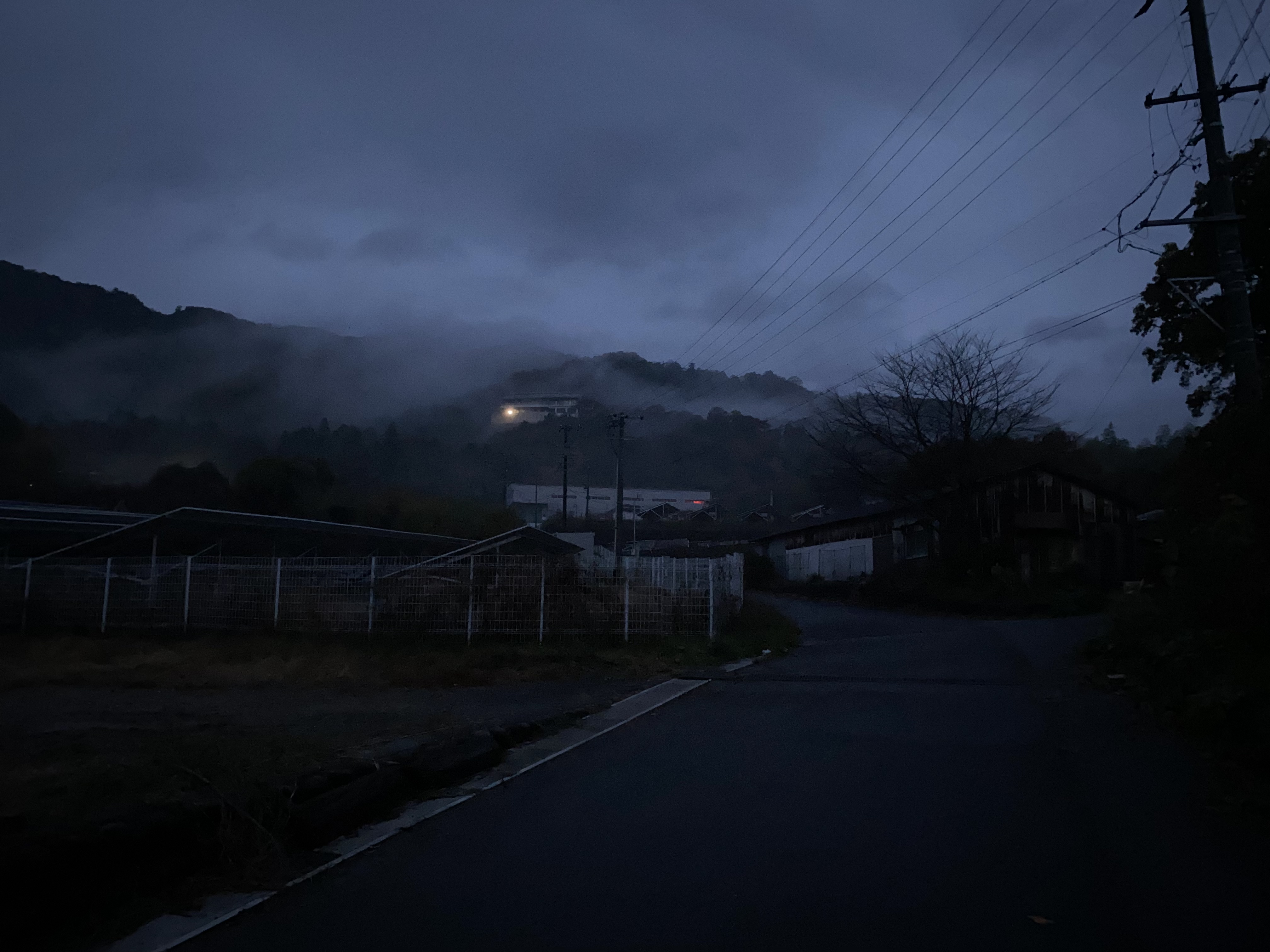 風強っ 雨は降らなかったけど1日風が強くてハリスちゃんなどはなかなか飛ばずに下りて走ってました。画像は昨日の夜明け前小雨で靄って街灯がぼやけて不思議な雰囲気に