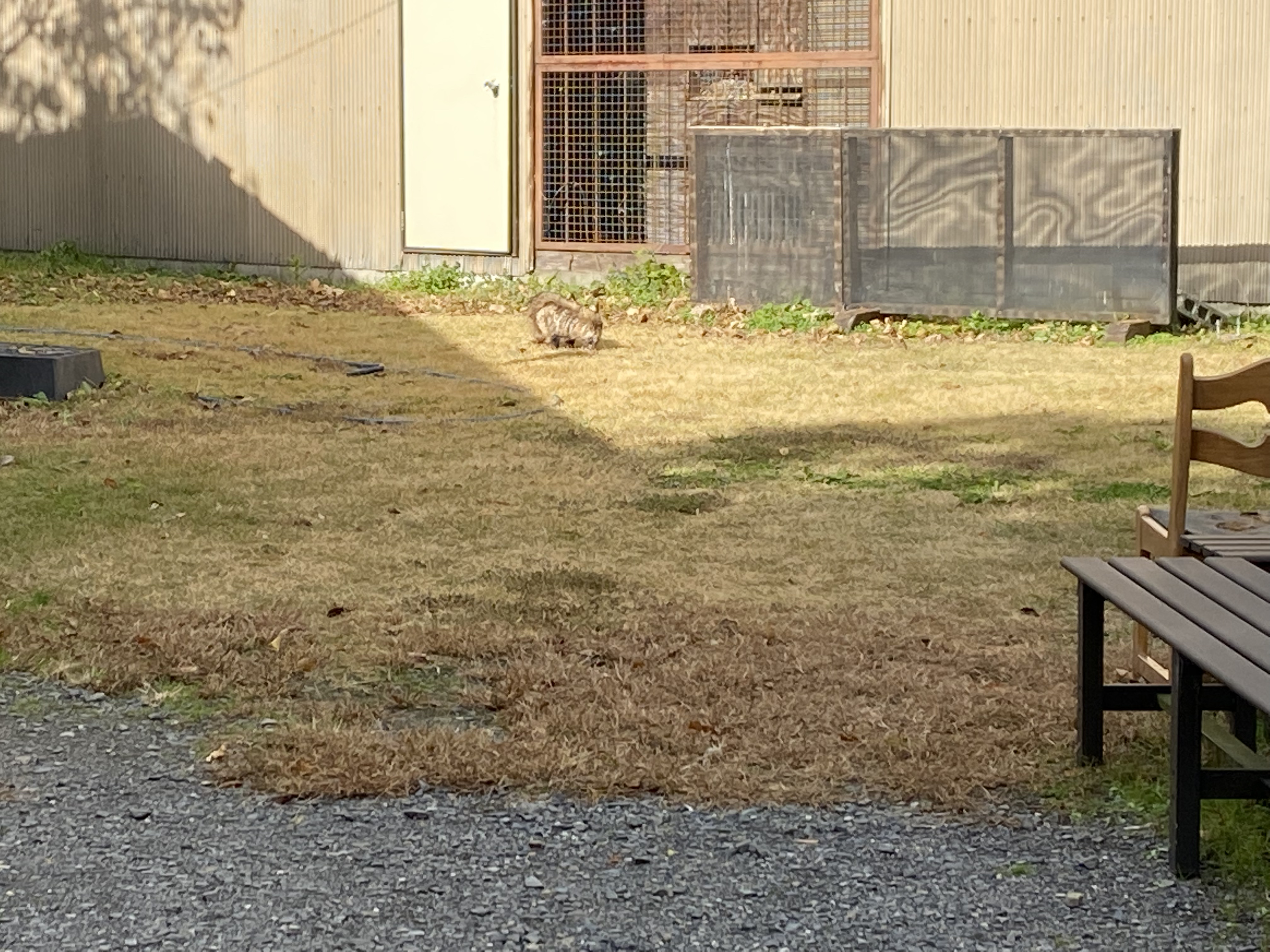 ん? 若い(たぶん)タヌキさん敷地内ウロウロしてるけどカイセンだし足びっこ引いてる...