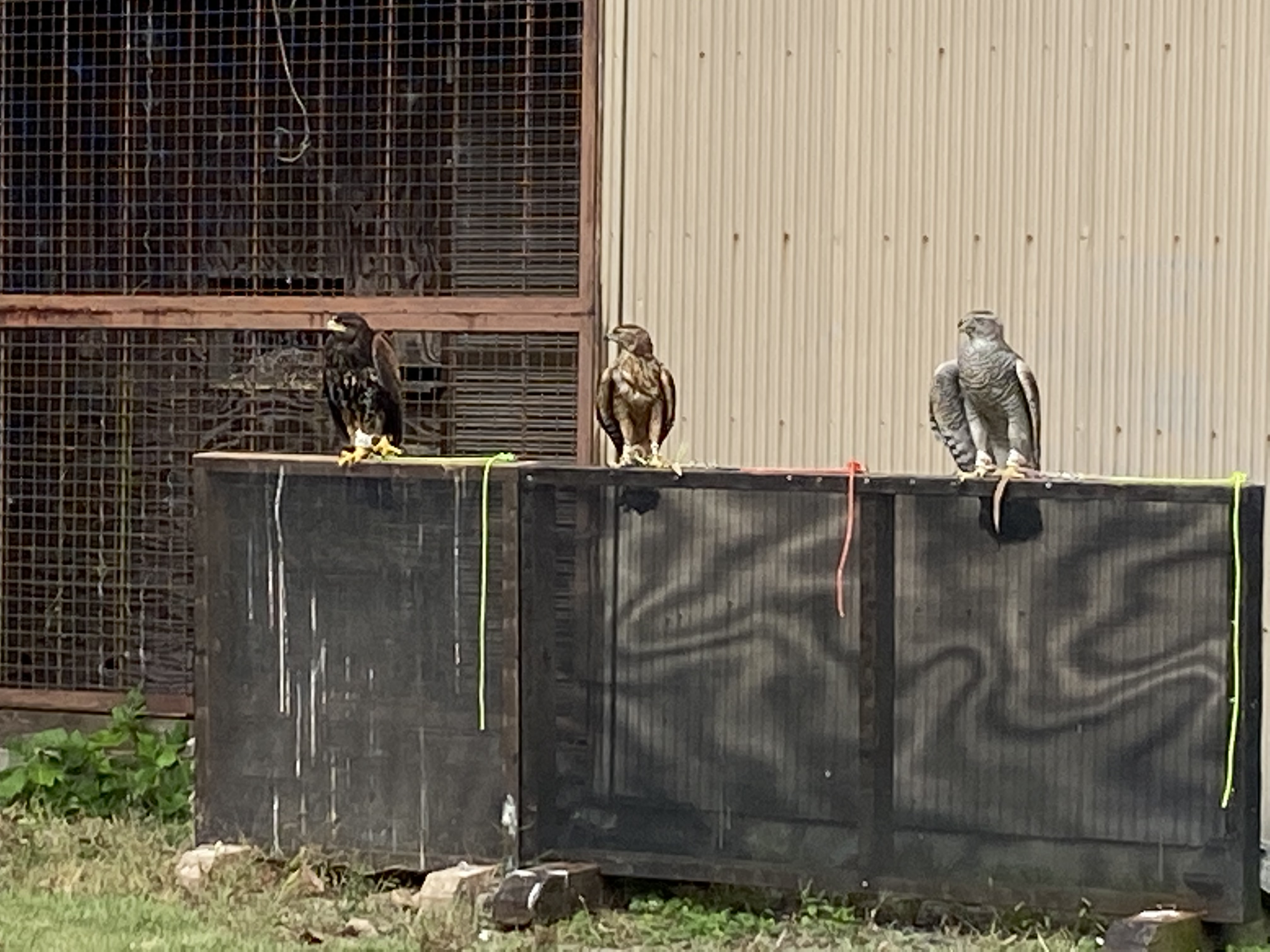 並んで 3羽晒せるようにしてくれました。とりあえず、私が訓練してる2羽を