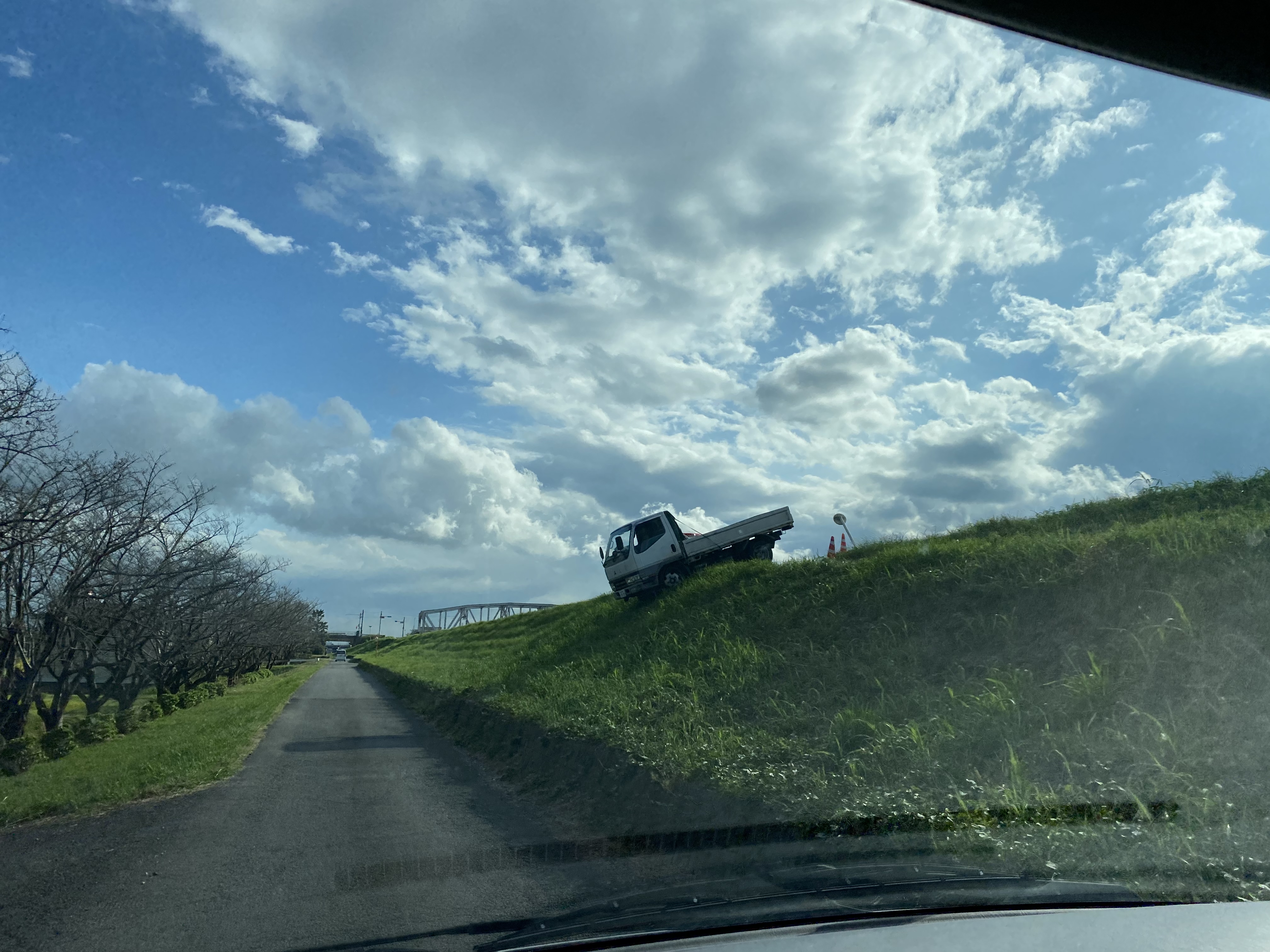 あらら 地図、岐阜県をもらいに行った帰り道。遠目にパトカーいるなぁ、と思ったらトラックが…先日のうちの軽トラよりは引き上げるの難しくなさそうですけど…