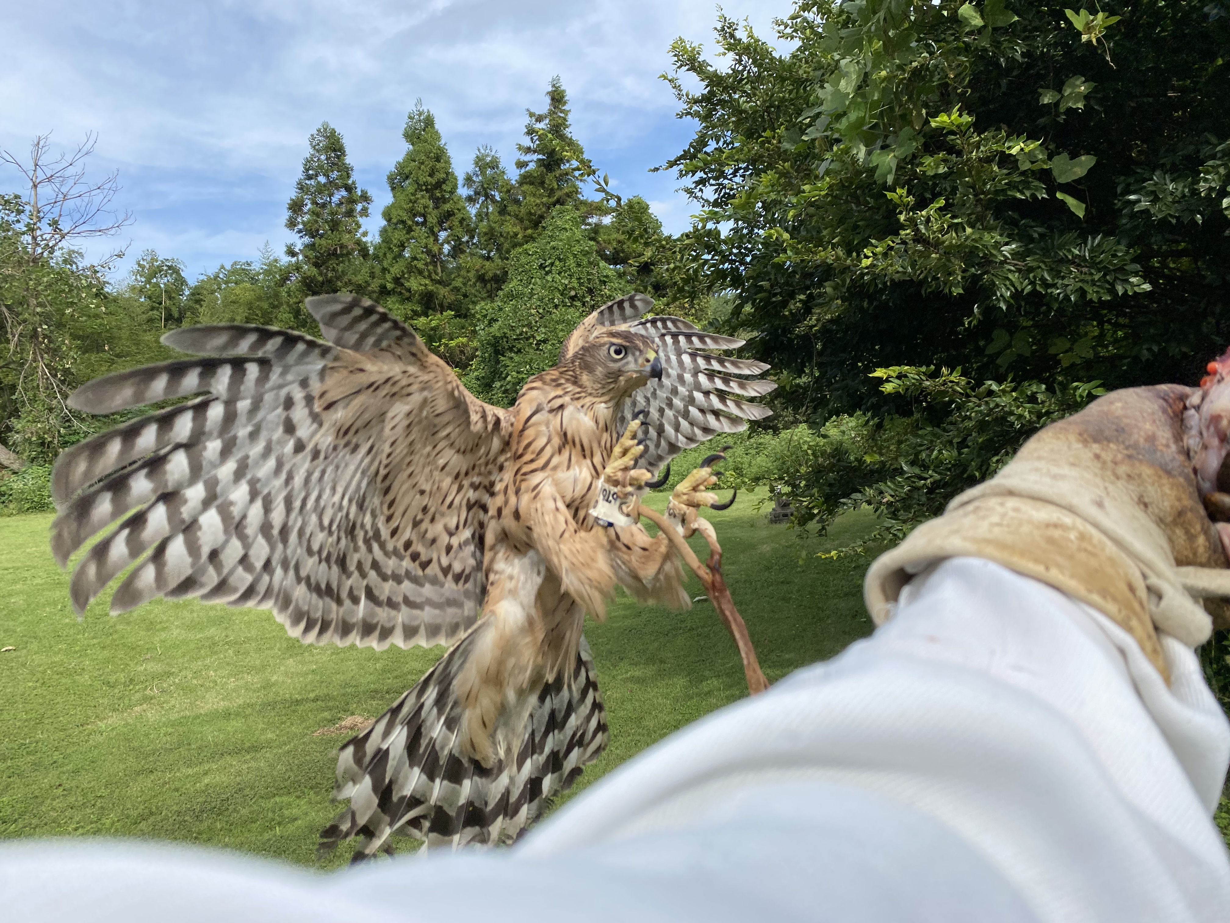ルアー 外で切餌ポンの後はルアーを一度忍縄付けて距離とって呼んでみたら飛んできました。はじめて飛んだので拳にのるのは怖かったのか地面でしたが今までは餌やりのついでに拳から切餌とらせたりルアー教えたりしましたが、これ以上はちゃんと体重コントロールしてしっかり訓練した方が良さそうです。