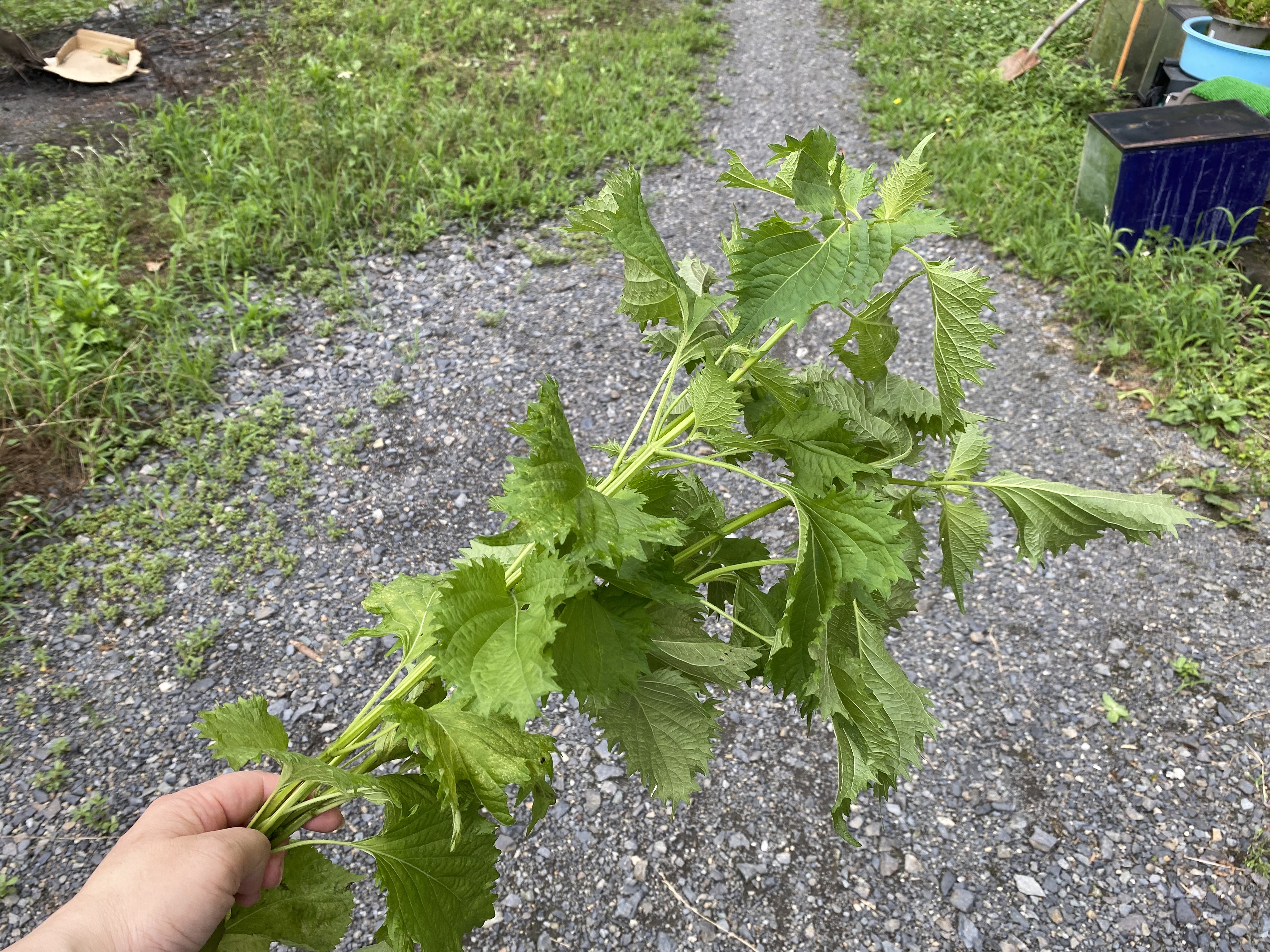 頂きました 大葉の束。今朝、子供たちを交差点で見守る旗当番の日でしたので、交差点に立っていたのですが、子供たちも無事登校して行ったので帰ろうとしたところ、常々見守って下さっている老人会の方かな?から頂きました。自宅で趣味で育てているそうですが香りも良く、立派です。