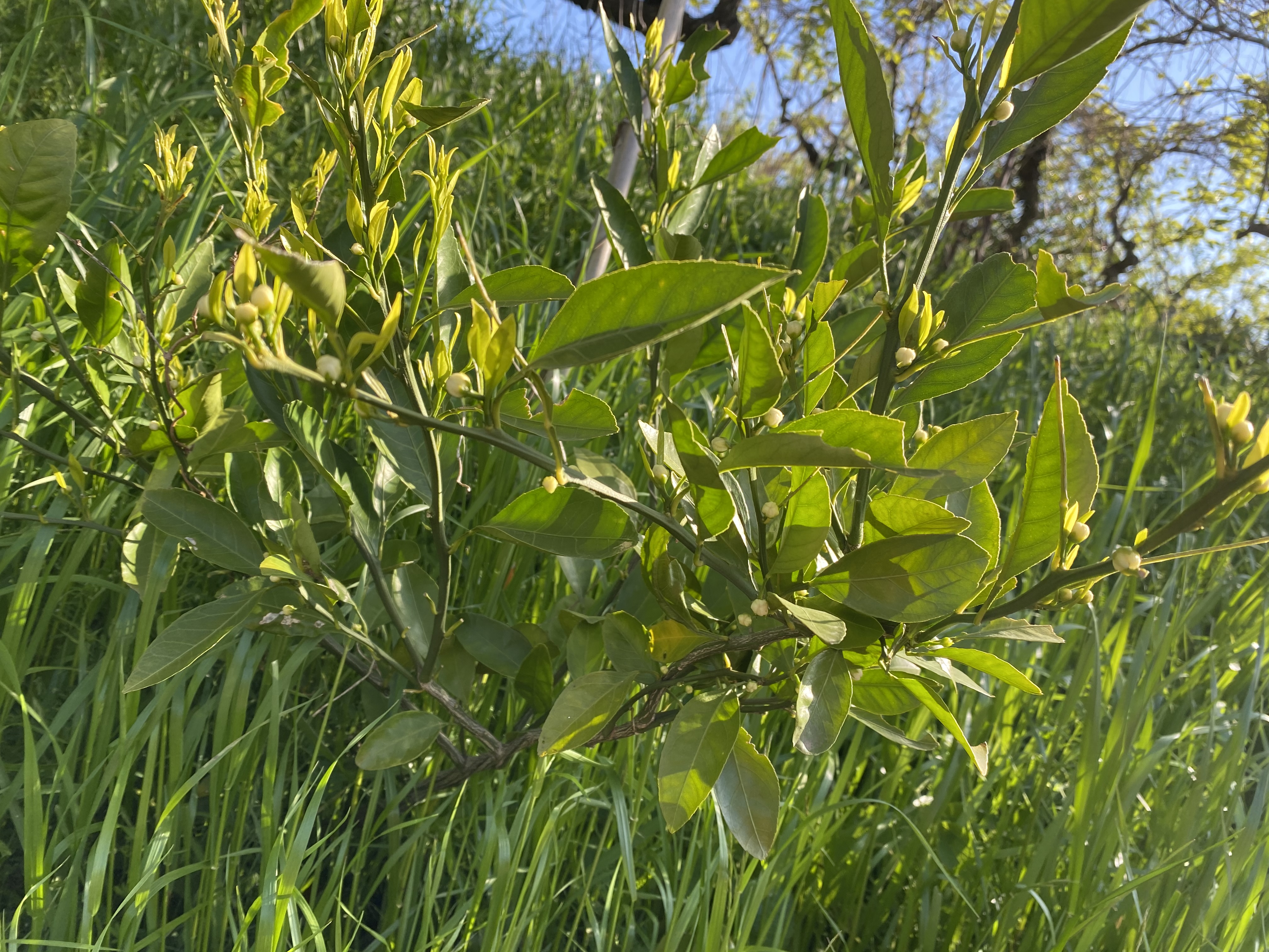 みかん 育っては草刈りで根元から切られ、また育っては切られを繰り返した挙句に某業者さんに踏みつけられたみかんの木ですが、やっと今年は育って少し花が咲きそうです。また切られないように気をつけなきゃですね