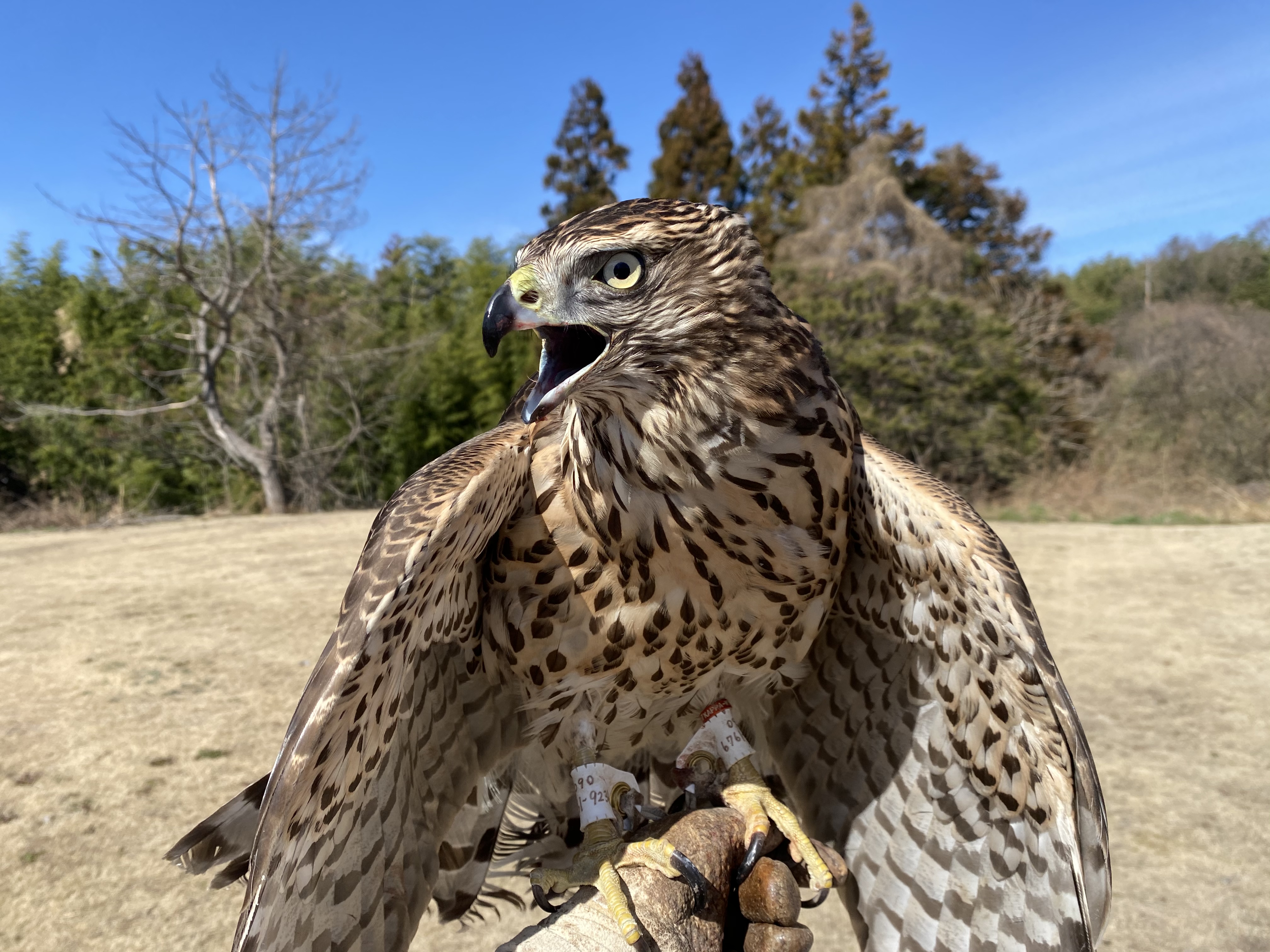 お疲れ様 昨日多めに食べさせたのと、移動などで疲れもあるかと思い、オオタカの訓練はいつもより軽めに終わらせました。