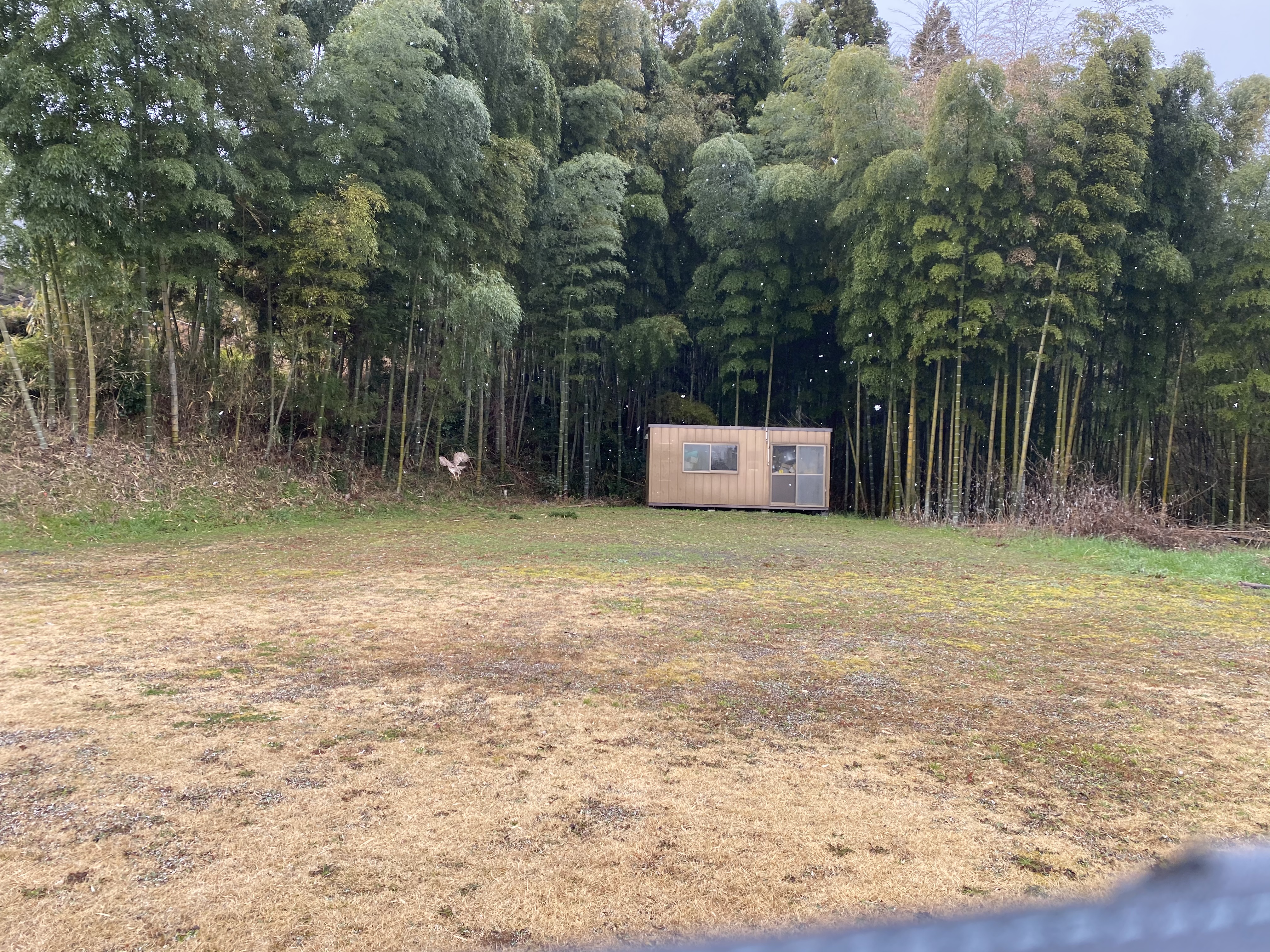 雪が チラつく中訓練。なぜかまっすぐ竹藪へ案の定とまるところが無くてこの後、落下。