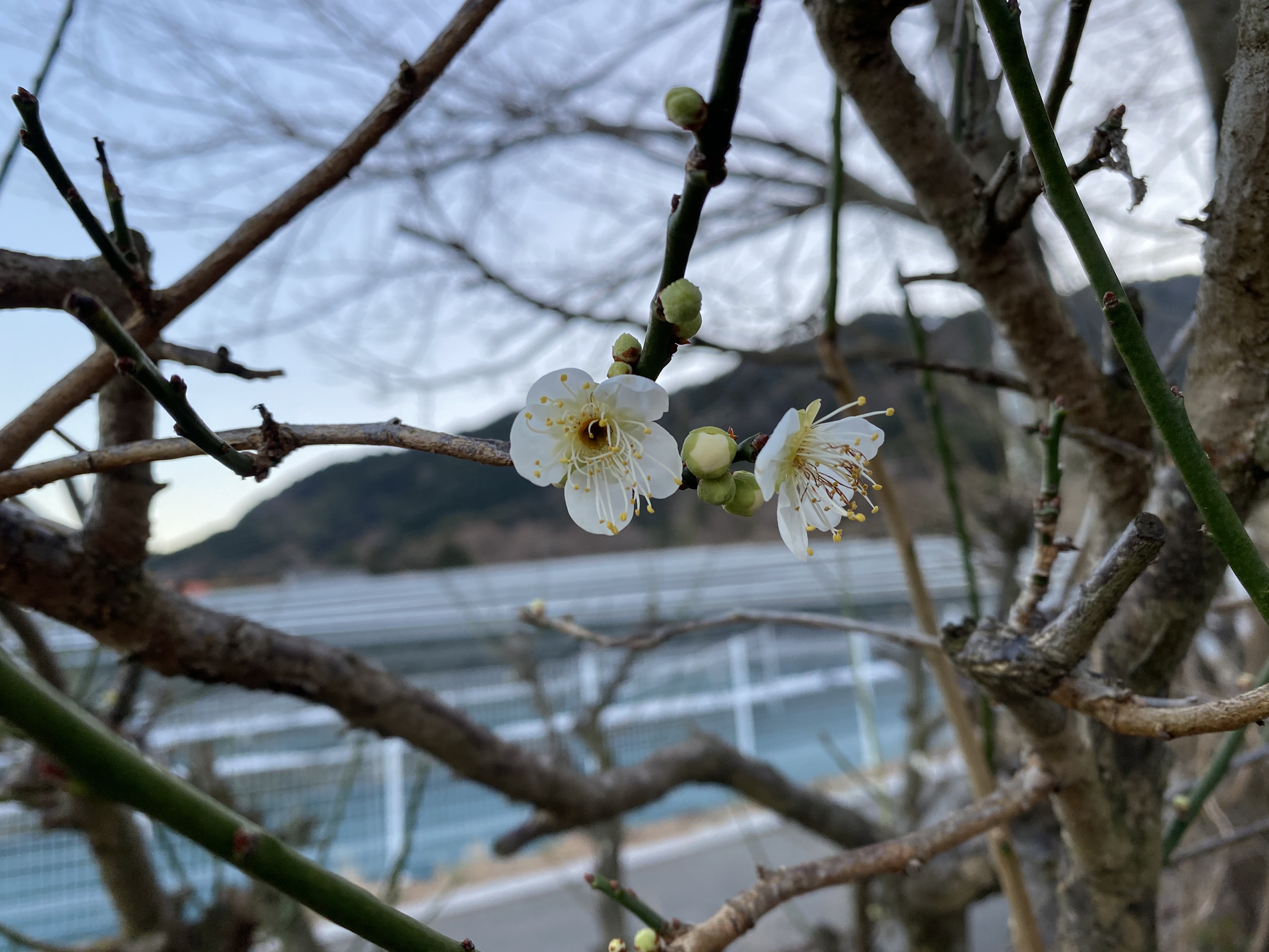 寒い チラチラ雪がそんな中でも訓練。そして梅も咲く。830g