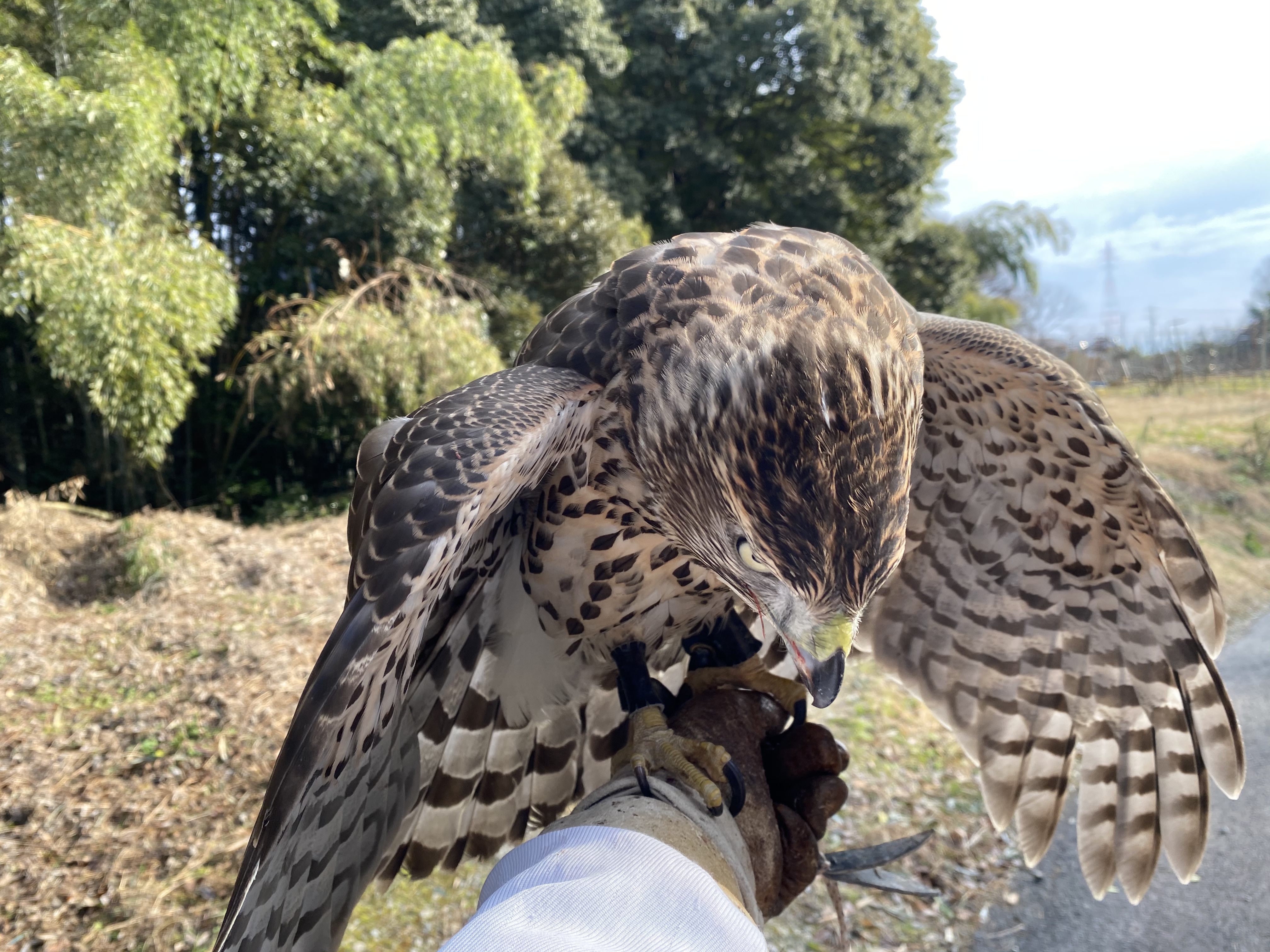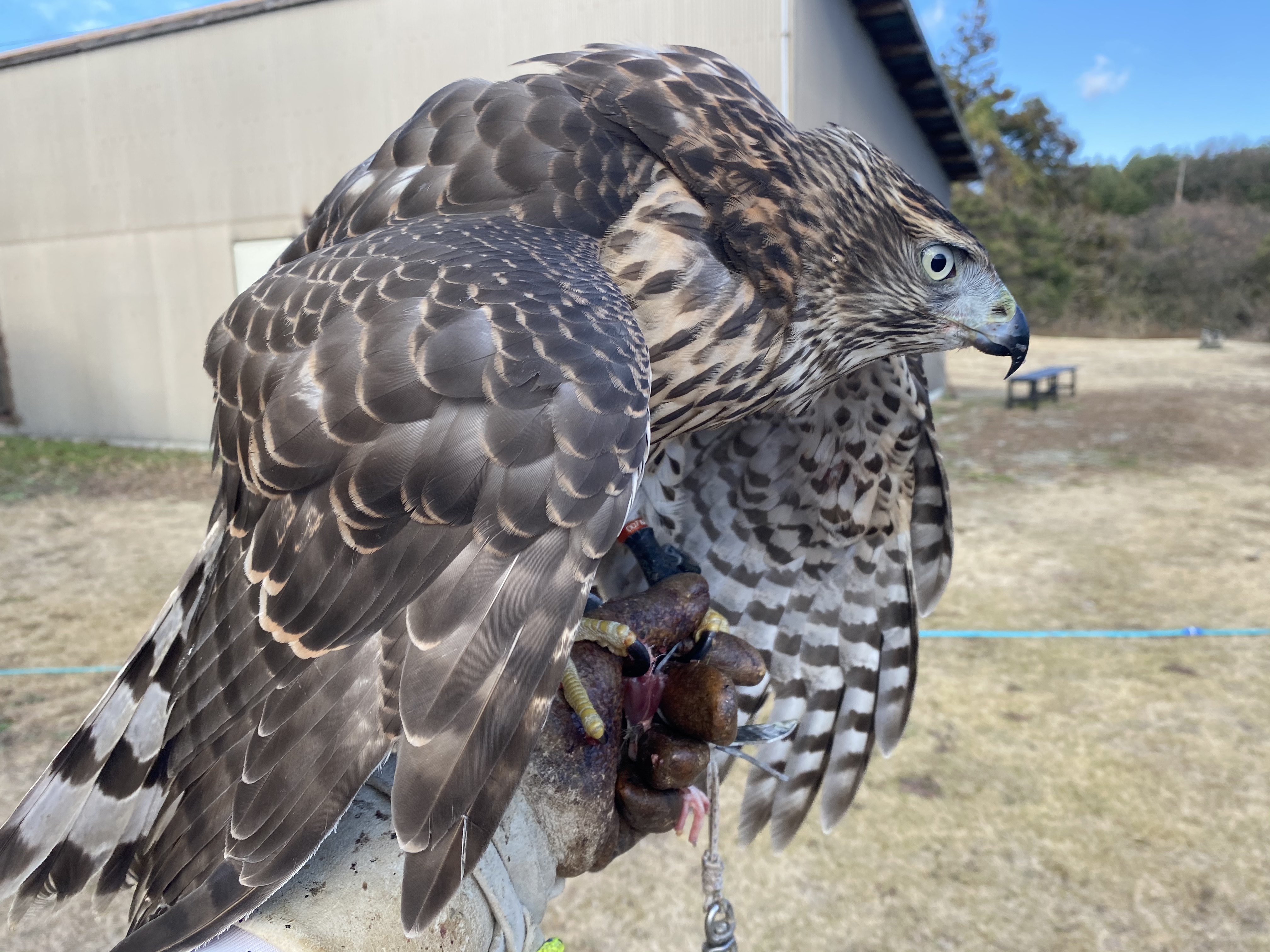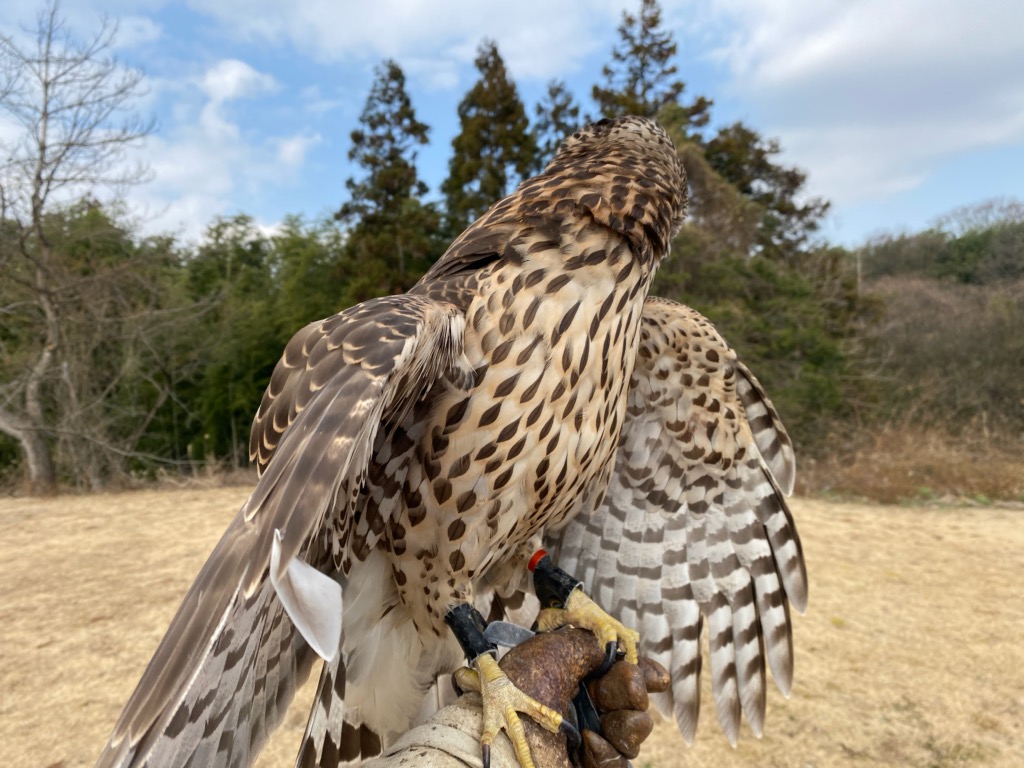 怖い まだ飛ぶのが下手なので?上へ上がってドンと拳におりてきます。見ていて受け止めないと頭にきそうです。845g