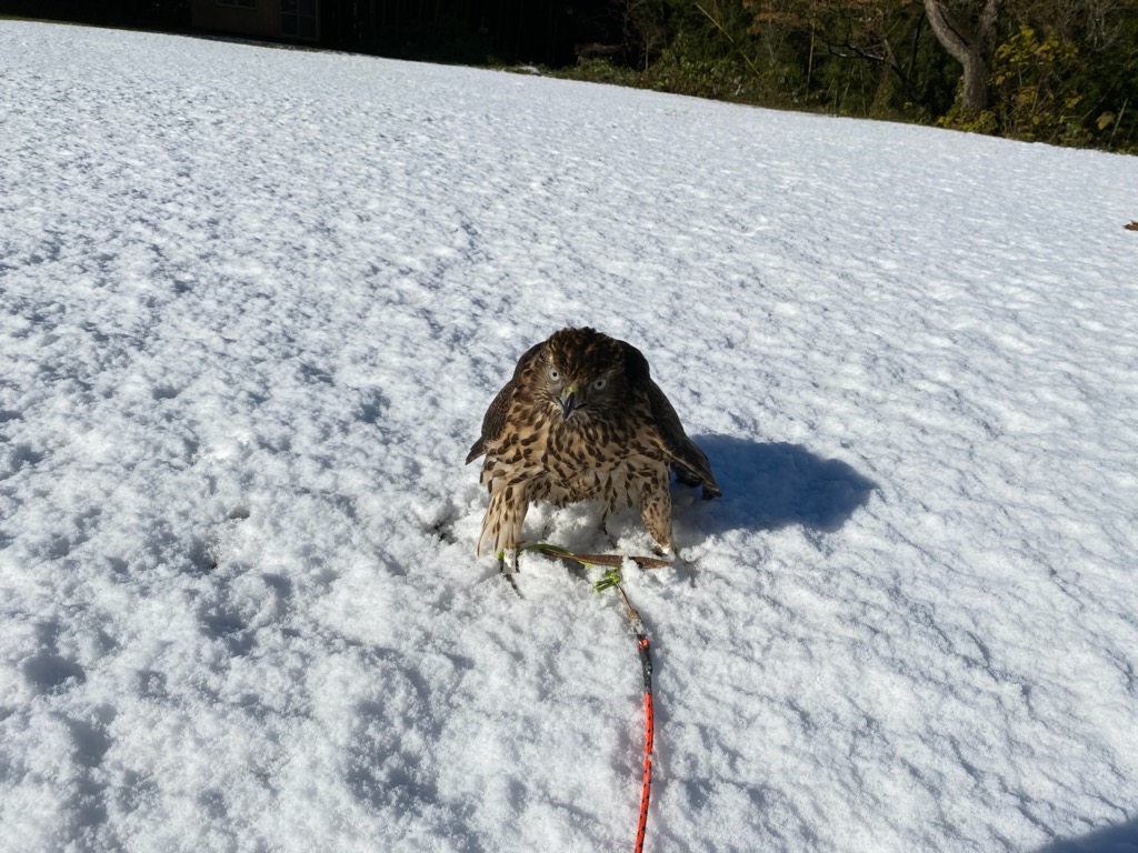 おそるおそる 雪の上におりてみる・・・