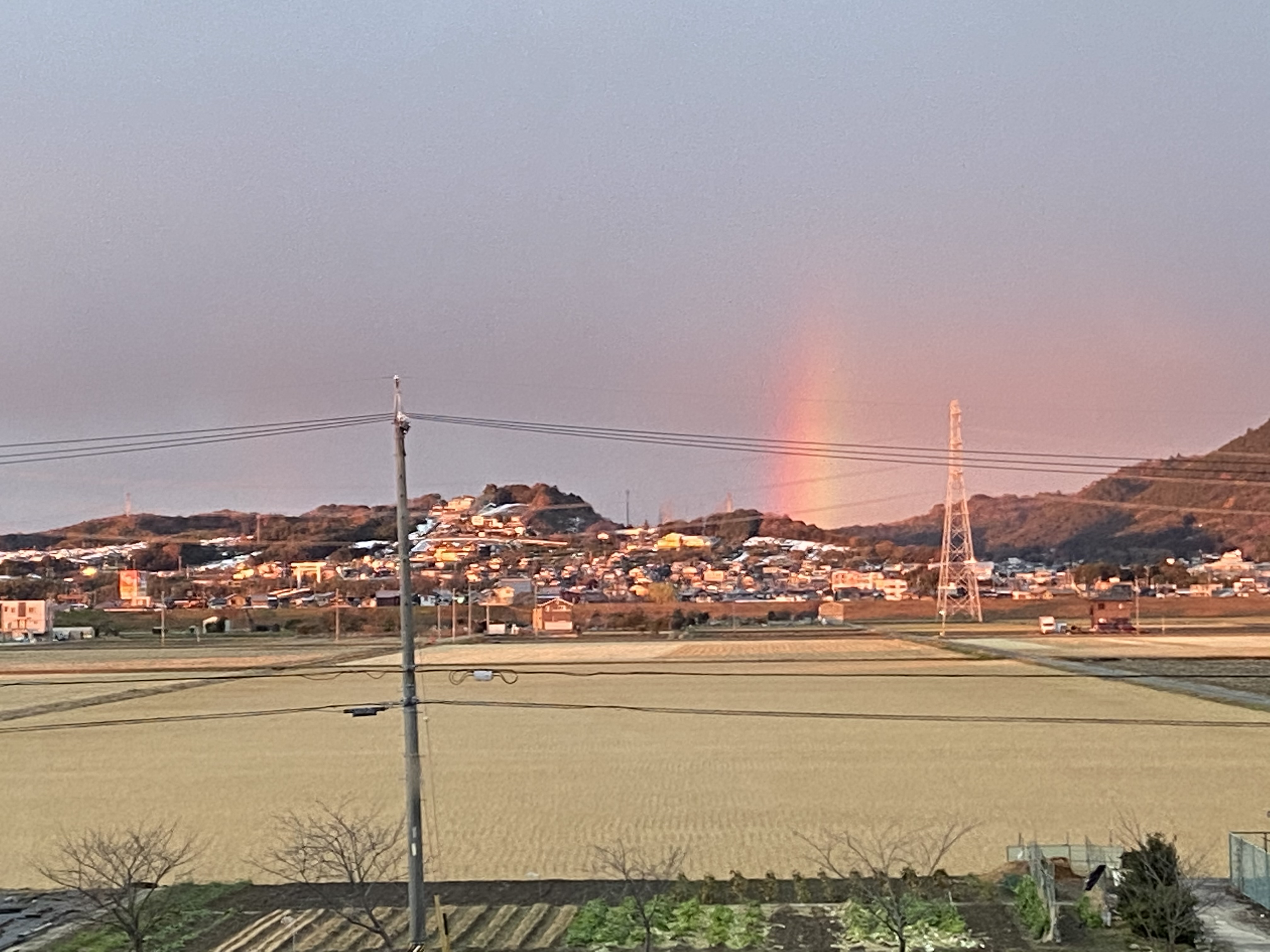 虹 朝焼けのなか虹の柱が立っていました。