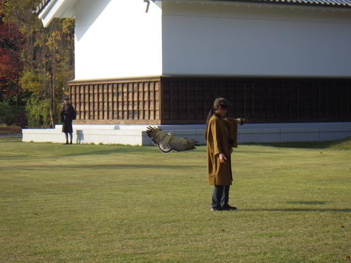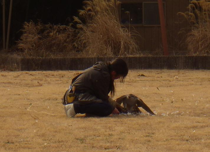 飛影 年明けぐらいから飛影をはじめました。子供を背負って訓練するとなるとメスは怖いので。気をつけないとオスも怖いのですが、この子はやさしくて子供も平気なので、今シーズンは飛影を使いました。金沢城の実演と協会の冬季研修に参加。で、今日は鳩で振りバトをしてたらふく食べさせて終了です。