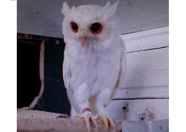 はじめて見ました 真っ白!アフリカオオコノハズクのアルビノ!いえ、ごめんなさい。入荷してません。ブリーダーさんから送られてきた写真です。お値段・・・怖くて聞けません。