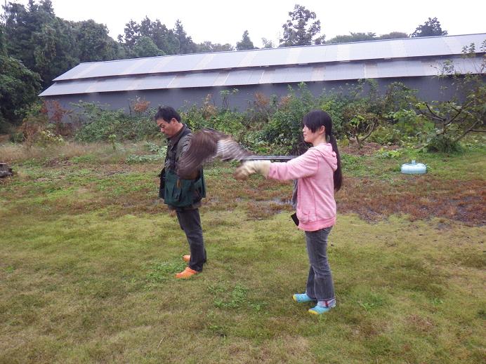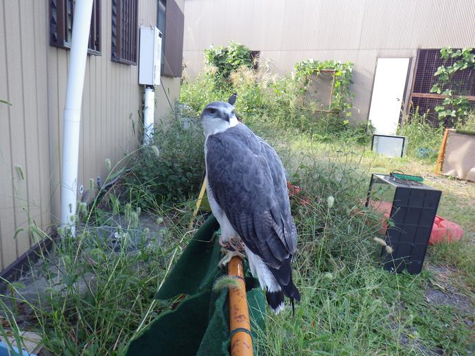 ふりかえ 螺旋君、初の振替を池上鷹匠補に手伝ってもらいました。この距離がやっとです。普段の渡りは芝生いっぱいは来るんですけどねぇ。
