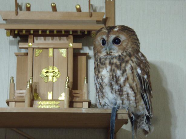モリフクロウ 我が家の癒し系ペット、モリフクロウの「ふく」です。日中はゲージの中でお留守番、夜はゲージから出してやり、部屋の中を飛び回っています。じ〜っとしていると置物みたいで、フクロウの置物と間違われたこともありました。糞は決まった所にするので下に新聞を敷くだけの手間いらず。今後何か良い写真が撮れましたら紹介したいと思います。時雨は毎日腹一杯餌を食べている状況。忍は、もう少しの間フリーで楽しもうと考えています。
