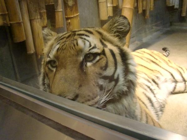 先日の出来事2 久しぶりに動物園に行ってみる。トラがガラス越しに今日の来客の入りを確認している様子?です。