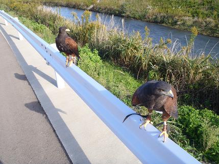 今日は、2羽で 訓練をしております。最近、仕事が忙しい池上さん・・・。早朝に池上さんの「朱雀」を預かりに行き、2羽を連れて海岸線をのんびりと散歩する。