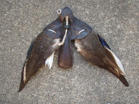 ルアー そろそろルアーに羽根でも付けてやろうと、カルガモの羽根をつけました。7〜8年使用した年期の入ったルアーですが、まだまだ現役です。でも、神内さんの「良く飛び上がるルアー」を見ていると欲しくなっているのも事実・・・。