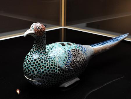 国宝 色絵雉香炉 以前から見てみたいと思っていた雉香炉を見に行ってきました。大きさは本物の雉と同じぐらいで羽毛の絵付けがとても綺麗で迫力がありました。隣には、雌の雉香炉も展示されています。※写真撮影OKは確認済!