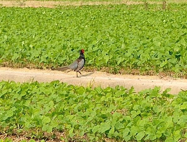 特に何もなく・・・ 忍と時雨は巣の中で卵を大事に抱卵しており、これといった変化もありませんが、来週くらいに孵化する頃です。今日は日記のネタ探しにカルガモの雛の様子でも見に行くと、キジがいたので写真を撮る。