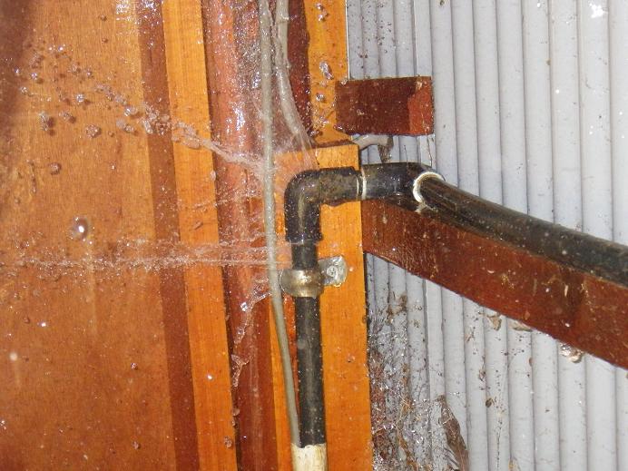 毎年お湯が出ない日は数日あるのですが、今年は時期も早いし、回数も多い。 今朝も店は大丈夫でしたが、ストック場のお湯は出ない。 店からお湯を汲んで、湯沸かし器周辺の配管にかけるも、出ない!? ・・と、突然「シュバー」と水の吹き出る音が!!? 「お湯、出たのかな!?」と思って見に行くと、TS13の水道管のLボー周辺から大量の水が・・・ どうにもならないので、とりあえず元栓を締めて、ホームセンターの開く時間までのんびりと過ごす。
