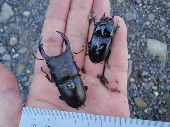 先日から、オオクワガタの掘り出しを行いました。 2年ほど前に近くで採ったオスとメスをから得た、4ペアの子達ですので、F2と言うことになります。 全部で58頭・・・ 半分オス47〜66.4mmで、メスは37〜41.5mm・オスはいくつかディンプルも・・・