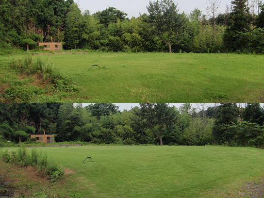 芝刈り 卵を抱いているペアから卵を取り出したので、一ヶ月弱ぶりに芝刈りを行いました。天気も今日しかない・・と言えるほどの梅雨の合間の晴れ日!?それでも多くの水を含んだ雑草は重く、芝刈り機の裏は濃厚草餅のように練りに練られた草がへばりつく・・・なんやかんやと1時間ほどかけ終了!!疲れました!!