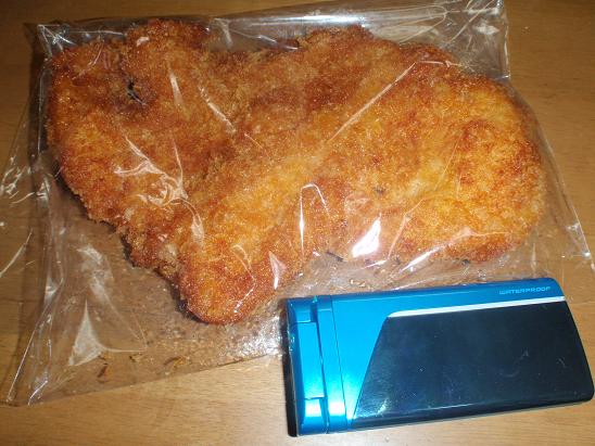 でかっ!! ずっしり重いチキンカツ!!ホクセイスー○ーで買ったんですが、一枚¥128・・・カツカレーに使ったので、家族4人(チビは計算外)で一枚で充分!!美味しく頂きました!!