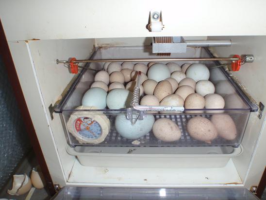 孵卵器の調整の為、購入したチャッカー(イワシャコ・キジ科の鳥で、ウズラ体型のハトより少し大きい鳥)の卵が届いた。20個の注文でしたが、箱を開けるとおまけが6個入っていて・・・26個。孵卵器はこの通り満室!!直ぐに新しい孵卵器をセットせねば!!?