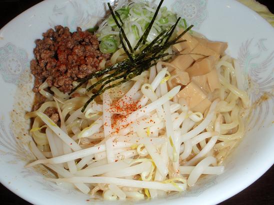 吉田氏がハリスのヒナを取りに来たので、一緒に昼飯を・・・ つけ麺「○和」で限定のまぜそばがあると言うことで行って来ました。 その名も「まかない まぜそば」・・・ここの麺が美味いのは折り紙付だし、スープもコクがあって濃厚・・・また、まぜそば、油そばの欠点であるスープが濃すぎたり、後味がさっぱりしなていなかったりは・・・全く無く、美味かったです!!まぜそばでは今んとこ一番美味かったかも!? 残ったスープ(もちろんホンのちょっと)にランチサービスの御飯を入れて食らうのがまた最高!!