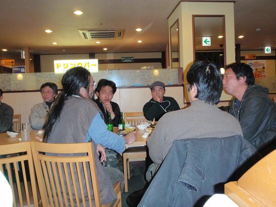 このメンバー!? 何を話しているのでしょうか???私と・・・おなじみ遠藤鷹匠、そして波多野鷹匠・・・久々登場の本田鷹匠・・・私とは因縁の深い(私の知られたくない過去を知る男)・・・新会員の吉田氏が加わり、何か怪しげ・・・・☆☆そして見てみぬふりの・・・室伏鷹師!