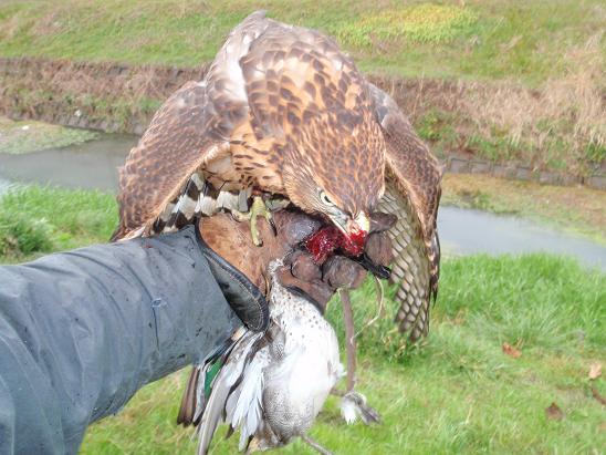なかなか刹那に獲らせられず苦労しています。まぁ、今日に関してはコガモが少な目だったのもありますが・・・ どうもまだ「私の狙い」と「彼の狙いにズレ」が・・・人鷹一体には程遠い・・・それでも良い時はコガモ・キジバトなら100m以上かなり良い感じで追っていきます。