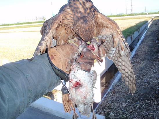 あちこち回りました。 午前中の刹那はダラダラ・・・ 追いが甘い、渡りが主になり始めたので、少し休憩しました。 その後、ブッシュのほとんどない川でバンを発見!! これは頂きものと近づくと草の塊の裏へ・・・「頭かくして尻隠さず」状態で刹那が見つけて「見込む」。するとバンの方も、気付かれたと思ったんでしょうね!?浅〜い、川に飛び出しました。そのまま引っ掛けるように、獲り切りました。 その後は親父のところから長男を拾い、帰り際で「なんか居たら!?」・・・コガモが2箇所程居たのですが、1箇所目は失敗!2箇所目で刹那は棒立ちしたコガモを真下から、後方宙返りのように足を真上に突き出してエアーキャッチ!!なかなか良い感じです。こういうのが映像に残せたら良いのですが・・・・ ☆☆☆☆☆