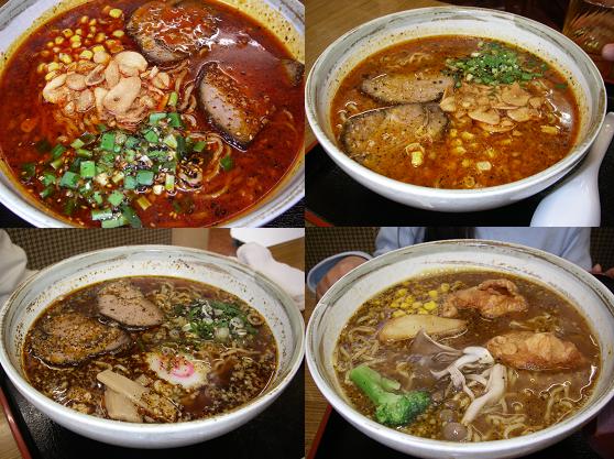 昨日は小学校の授業参観(研修後にかみさんは学校まで大急ぎ・・・)だった為、子供らが休み・・・ 店も暇そうなので・・・と言っても、休みにはできないので、ハンターマップの受け取りがてら、昼飯を少し遠出で・・・ うまかー麺「俺ん○」 左上が元気らーめん 醤油 すご辛 私 右上が元気らーめん 味噌 うま辛 長男 左下が辛うまめん 醤油 うま辛 かみさん 右下がカレーらーめん ちょい辛 長女