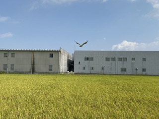 ここも良く渡りを行うとこ そのもの青き衣を纏う約2年前なので金色の野に降り立たぬよう飛んでくべしこんなとこに降りられると面倒ですが、今んとこちゃんと飛んでいきます。稲穂が美しいですね!