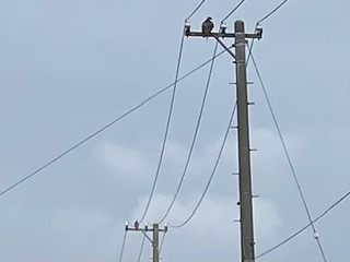 珍しいかも!? GGBの渡りの最中、モンビングされました。視界に入ってきた時はペルグリン(ハヤブサ)かと思ったんですが、若の弟鷹(オオタカ)でした。手前の電柱に居るのがGGB、奥の電柱に居るのがオオタカ!