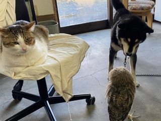 一松は無視、小鉄は困り果て 昨日の夜には水槽のふちへ上がり、今日は徘徊開始!猫も犬も気にしないのは良いですが、偶発的な事故は起きないとも限りませんので、注意していないと・・・