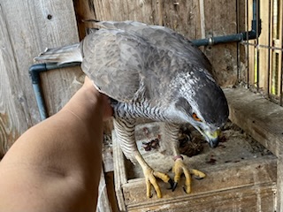 あめんなか オオタカの人工授精はいま真っ盛り!ですが、今日はあいにくの雨。足元ビチャビチャ、オオタカ メスには掴まれるし・・・ 「こいつだよ!コイツ!!」