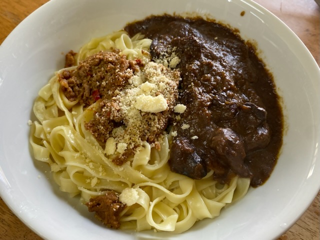 昨日の昼はカルガモカレーで、夜はやはり破れたフリーザーパックに入っていた輪切り唐辛子を使って台湾ミンチ丼!!