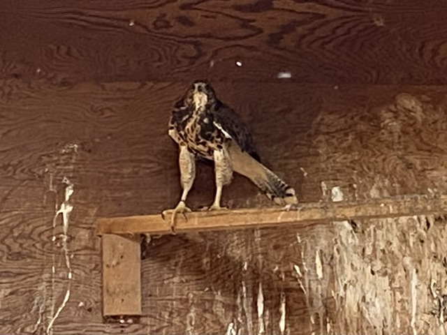 移動したハリスホークの若鷹ですが、まぁ当然ながら落ち着かない様子!