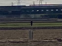 オオタカ!? 河童九号機は明日出る予定がありガソリンスタンドに・・・途中、田んぼの真ん中にオオタカらしき姿が・・・・逆光なのでわかりにくいですが、たぶん!と、河童八号機で急遽出ることに・・・・
