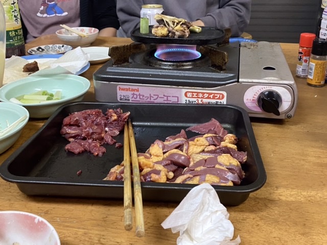 猟期初日に諸事情で出来なかった「鴨鋤/かもすき」パーリィーをおこない、真野会員夫妻、楠会員が初鴨(カルガモです)を味わった。 ※私らは鴨鋤に出来ない皮剥き鴨をすでに喰ってます。