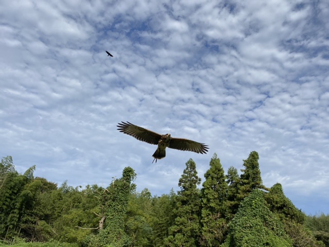 弟の会社からの依頼で実演を行いました。 私、かみさんに加え、岡村鷹匠、衣笠鷹匠にも手伝ってもらって・・・ ハリスホーク兄、因、かみさんのメンフクロウ、岡村鷹匠のハリスホーク2羽・・・ コロナ対策のため、予約で・・・だったので、お客さんは少なく、従業員の方が多いくらいでしたが、喜んでもらえたのではないかと思います。 場所はこんな感じ・・・ 案外神経質なハリスホーク兄もちょっと嫌そうな顔してましたが問題なく、因も「使い熟す/つかいこなす」ことに専念してきたんで、まあなんとか良くなってきて・・・