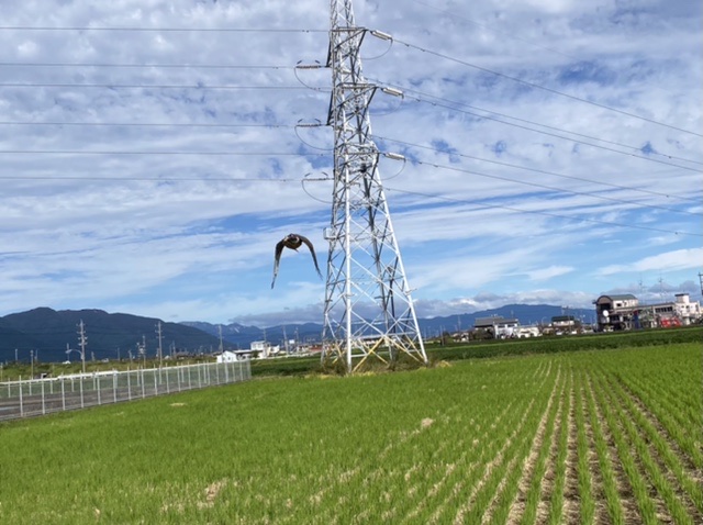 風強め ・・・で、いつもの鉄塔だと、風に負けてぶつかったりも嫌なんで、別の鉄塔で風上へ向けて飛ばしたり、電柱に上げたりで・・・・・