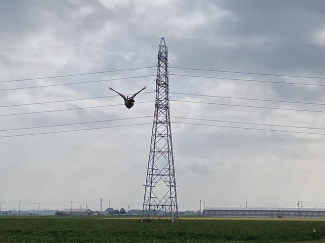 がんばらせる 雨がパラついていたので、ハリスホーク兄はお休み!因はいつもの鉄塔で頑張ってもらいました。