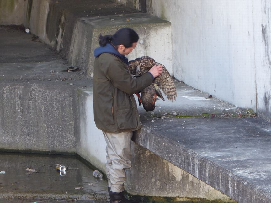本日も雪のため仕事が休みになりましたので、神内鷹匠と鷹狩りに行ってきました。 弥勒は良い場所で数回当てさせてもらいましたが、結果は出せませんでした。 神内鷹匠の飛苦無はカモを2回掴むも離され・・・同じく結果は出せませんでした。でも、飛苦無は良い場所なら結構な確率でカモに絡みます・・・さすがです。 カモの立たせ方や、羽合わせるタイミング等を見ていると、いろいろ勉強になります。