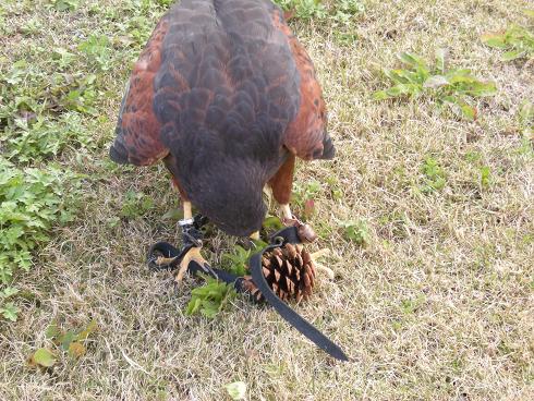 ・・・こっそり書いておきます。 蘭丸、初出猟しました。 最初の標的は遠藤鷹匠のホワイティーが藪から追い出してくれたバンのはずがなぜかヌートリア。もちろん無視。 次はカルガモ。蘭丸は飛び立つカルとは逆方向の民家の屋根に止まる。 次もカルガモ。またまたカモを追うことなく川の対岸へ着地。 実際カモにあてた経験がないので、蘭丸が獲物として認識していないのでしょう。初出猟は不発に終わりました。でも強風の中、風にあおられてもちゃんと帰ってきたのでよかったかな。 できればゴイサギがよかったのですが結局いませんでした。 見学ではなく実際経験してみて、鳥と人間が勉強しなければならないことがたくさんわかりました。 一日お世話になった河童、放鷹協会のみなさん、そしてわざわざ運転手をしてくれたM&Kさん、本当にありがとうございました。 初鳥飼い目指して頑張ります。