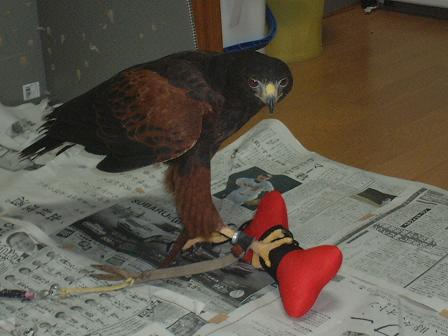 抱卵中のチョウゲンボウ、ミカの卵をいつ取り上げるか悩んでいたのですが・・・ 偽卵も用意していたものの上手に割らずにいたのでそのまま抱かせていたところ、今日ひとつ割ってしまったらしく異臭がしてきたので、これをきっかけに取り出すことにしました。昨年は自分から抱卵をやめると同時に尾羽が抜けたのでタイミングもわかりやすかったのですが。 今年はなかなかあきらめないようで、抱いている最中になくなってしまったものだから、かなりとまどっているようです。何度も確かめにケージを出入りしては、ないはずの卵をまだ温めています。 早くあきらめてくれればいいのですが、ちょっと切ないなぁ。。
