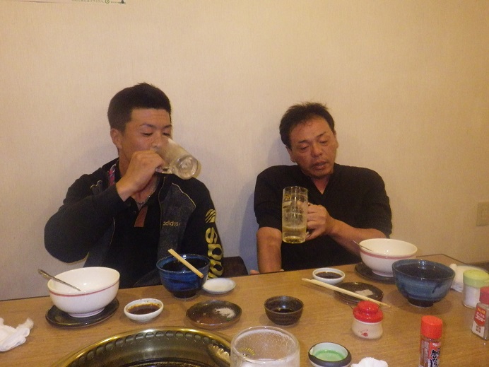 いけやんとかわちんと 大阪城実演を無事終えることが出来て・・・語り、K実演に向けて毎朝暗いうちから訓練して頂いた池上鷹匠補に心から感謝してます!無事成功して美味い酒が呑めました。by河村かわちんよく頑張りました!by池上