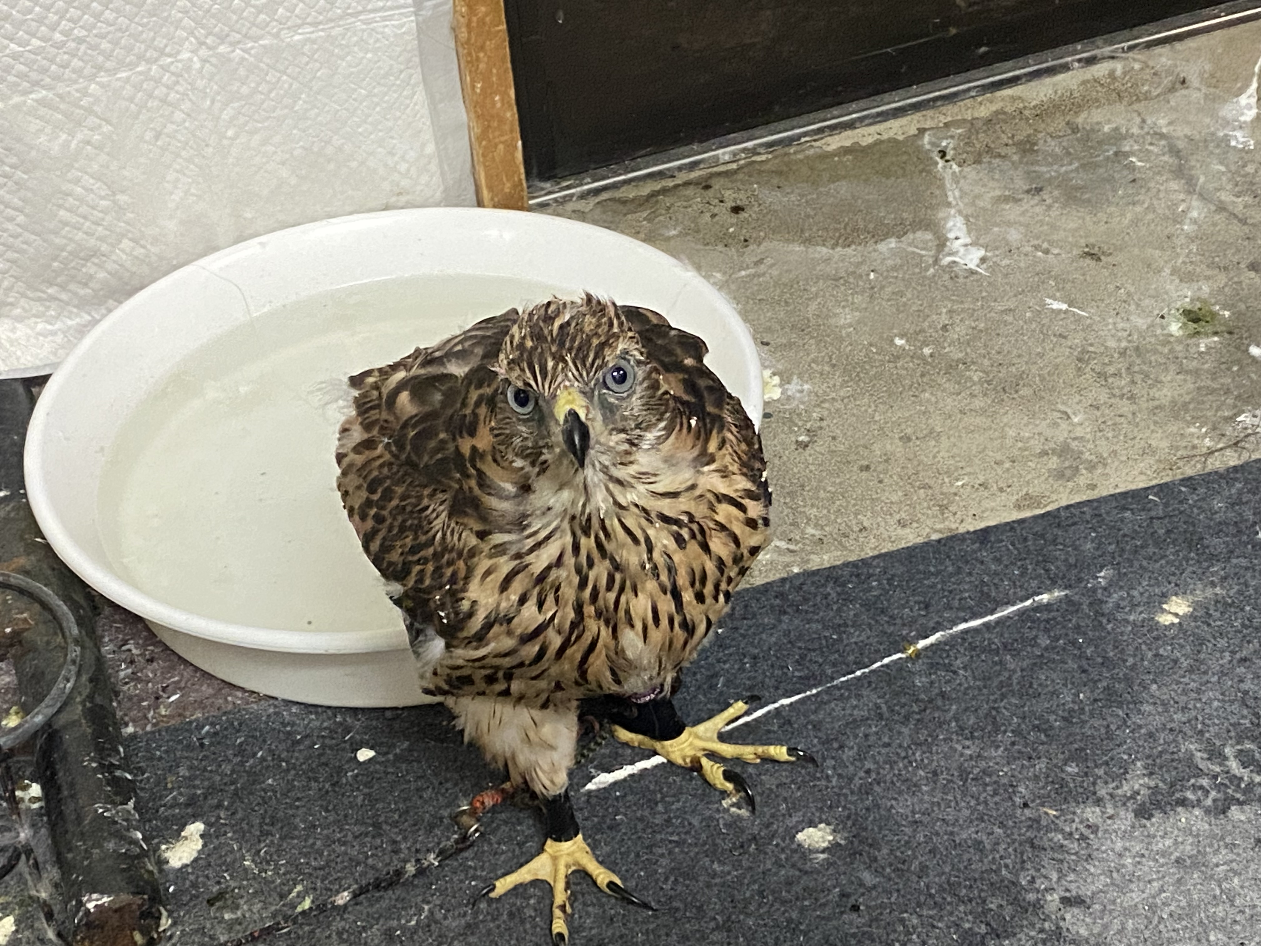 水浴び 室内なので結構大変ですがあまりに暑いので。周辺はびしょびしょです